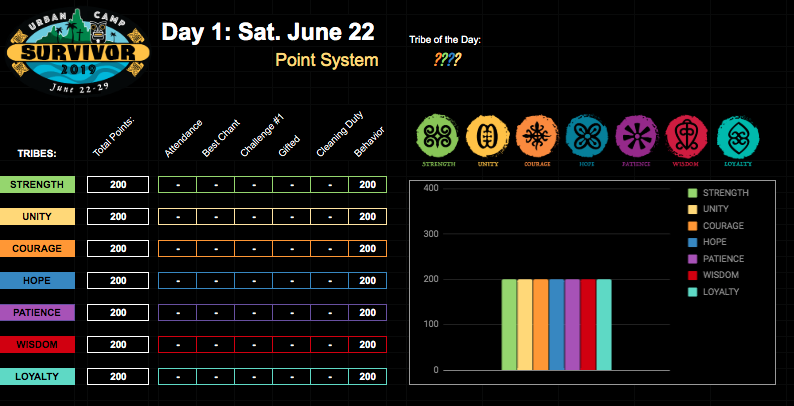 Attendance (1000 points) - Participating each day could make your tribe win the ultimate prize.